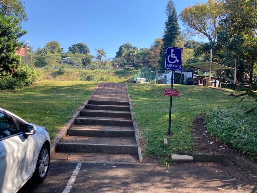 Parking for the disabled and a path along which they are then offered to climb.