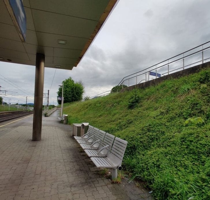 "When it rains, all the water from the roof flows directly onto the benches."