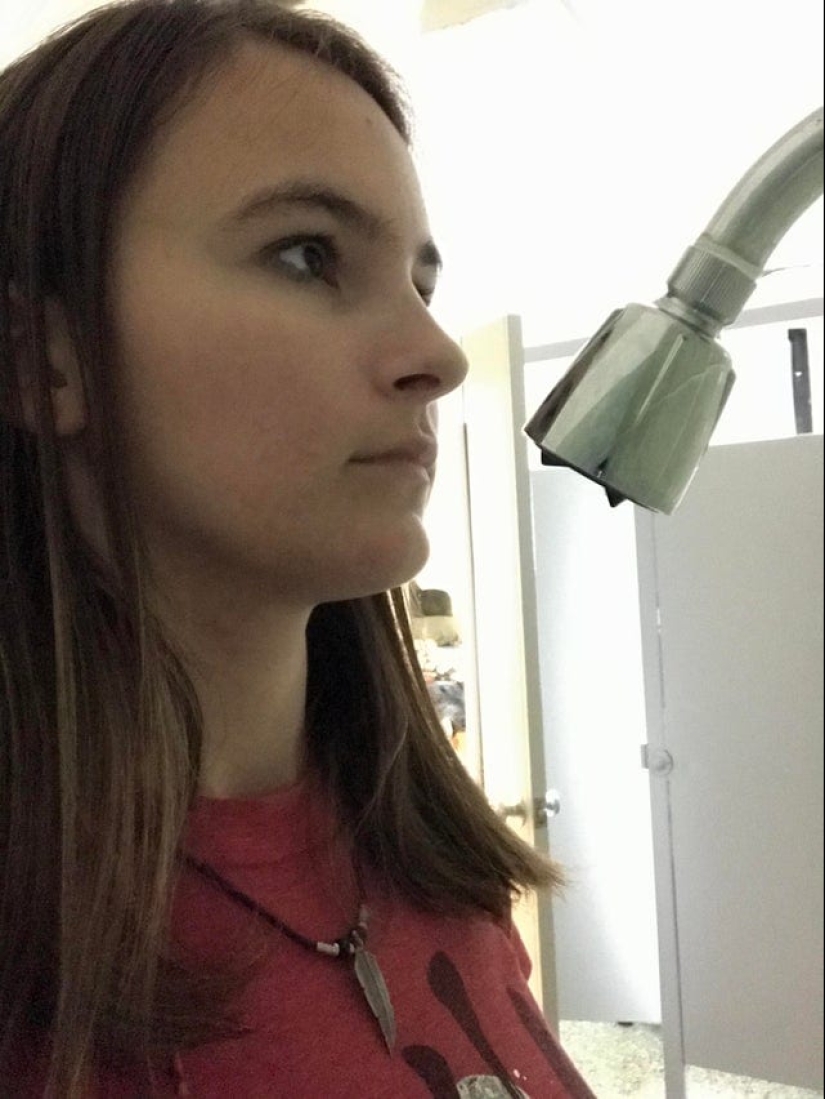 "Shower in my dorm. My height is 170 cm."