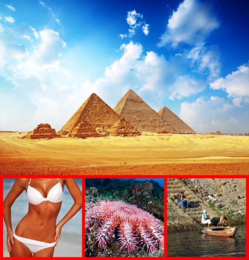 In Egypt, you can enjoy the view of the ancient pyramids and the thoughtful Sphinx, go swimming in the Red Sea and ride a camel.