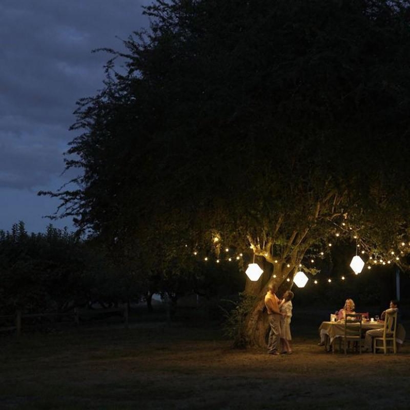Nada creará un ambiente romántico de verano como una guirnalda de faroles blancos especialmente diseñados para la calle. Cuelgue guirnaldas alrededor del sitio o decore el techo y un árbol cercano con ellas. Otro gran movimiento son las pequeñas antorchas que se pueden colocar alrededor del perímetro de la terraza. También puedes usar pequeñas velas-tabletas. (Ryan McVay/Visión digital/Getty Images)