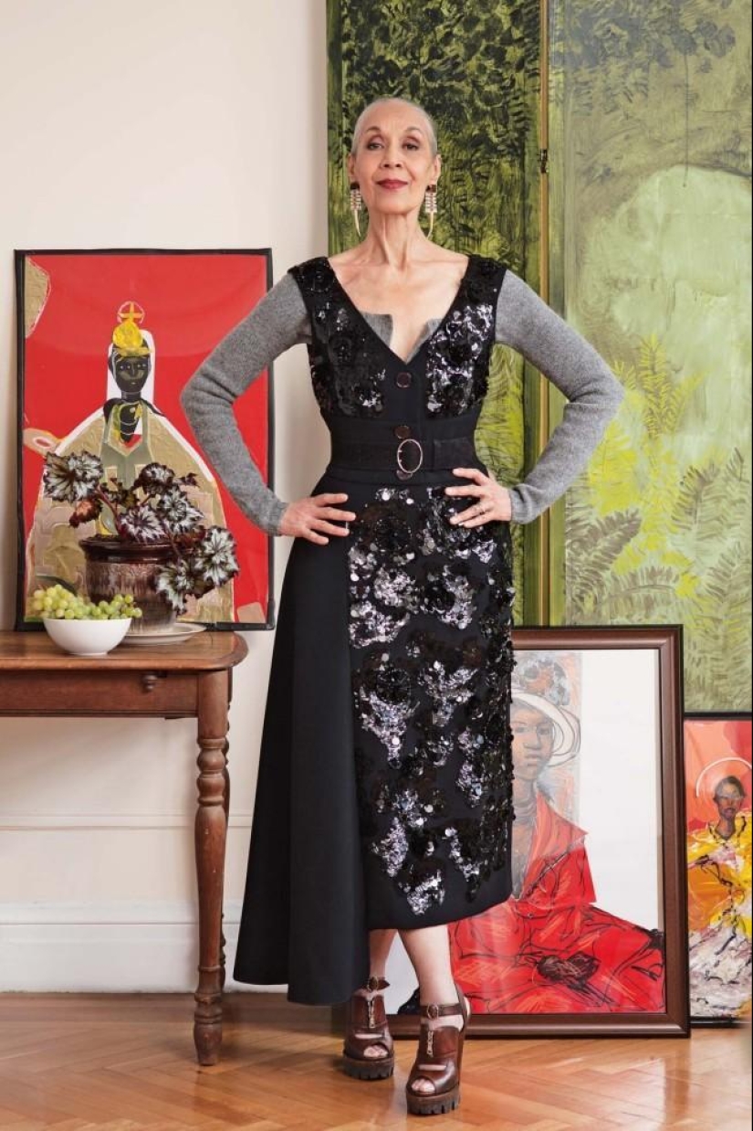 La bailarina Carmen De Lavallade, de 82 años, ha pasado siglos en el escenario y sabe cómo vestirse. Ella ama especialmente este top y vestido de Prada.
