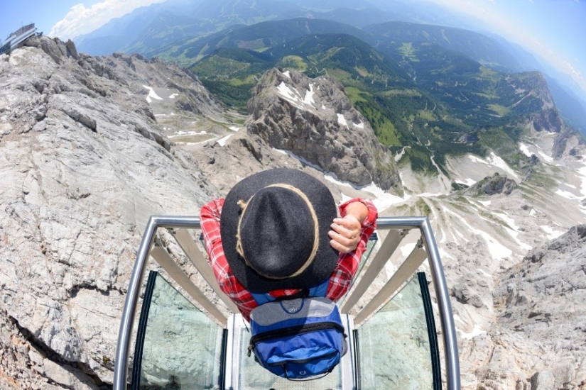 La plataforma de observación del puente es un balcón en el acantilado escarpado de Hunerkogel.