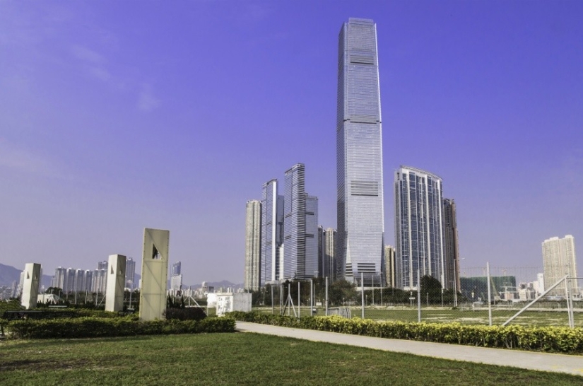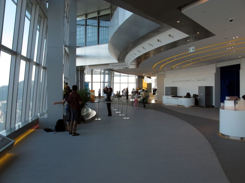 "Sky 100" es una plataforma de observación circular en el piso número cien del Centro Comercial Internacional, diseñada por la compañía de arquitectura "Con Pedersen Fox" en West Kowloon, Hong Kong.